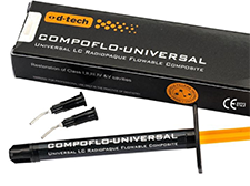 Compoflo Universal is a unique high viscosity flowable with shape holding, non- slumping properties with ultimate strength at par with packable composites. It is a light curing, radiopaque Nano Hybrid composite resin material. It’s composition of high-end nano fillers allows for remarkable mechanical properties and excellent gloss.